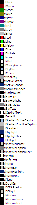 | clBackground | Repräsentiert die Standardhintergrundfarbe von Windows. |